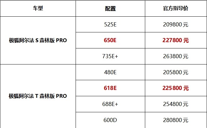 同时,此次极狐汽车新增阿尔法S森林版PRO 650E和阿尔法T森林版PRO 618E两款续航版本车型,官方指导价分别为22.78万元和22.58万元。焕新而来的阿尔法S/T森林版PRO,将凭借健康座舱、极致安全、舒适豪华、续航品质四大硬核实力,为用户带来更安全、更舒适、更豪华、更具价值感的超值纯电出行体验。