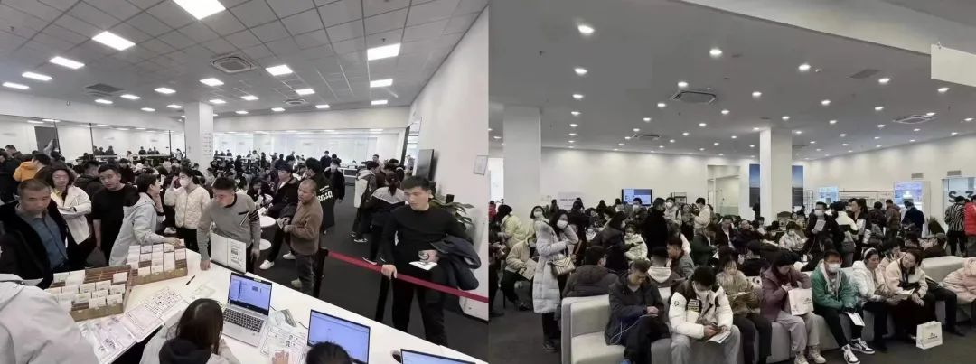 (在特斯拉交付中心,大量新车主排队提车盛况)