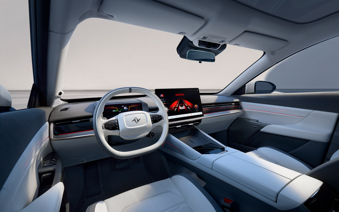 除了高颜值,eπ007还具有先进的高智能表现,搭载行泊一体高算力智驾系统,采用黑芝麻智能华山二号A1000芯片,算力达到58TOPS。全车装备高达31个智能感知硬件,可实现“高速NOA领航辅助驾驶”、“LAPA超视距记忆泊车”等同级少有的高阶驾驶辅助功能;全系标配L2级智能辅助驾驶及大量智行安全配置。