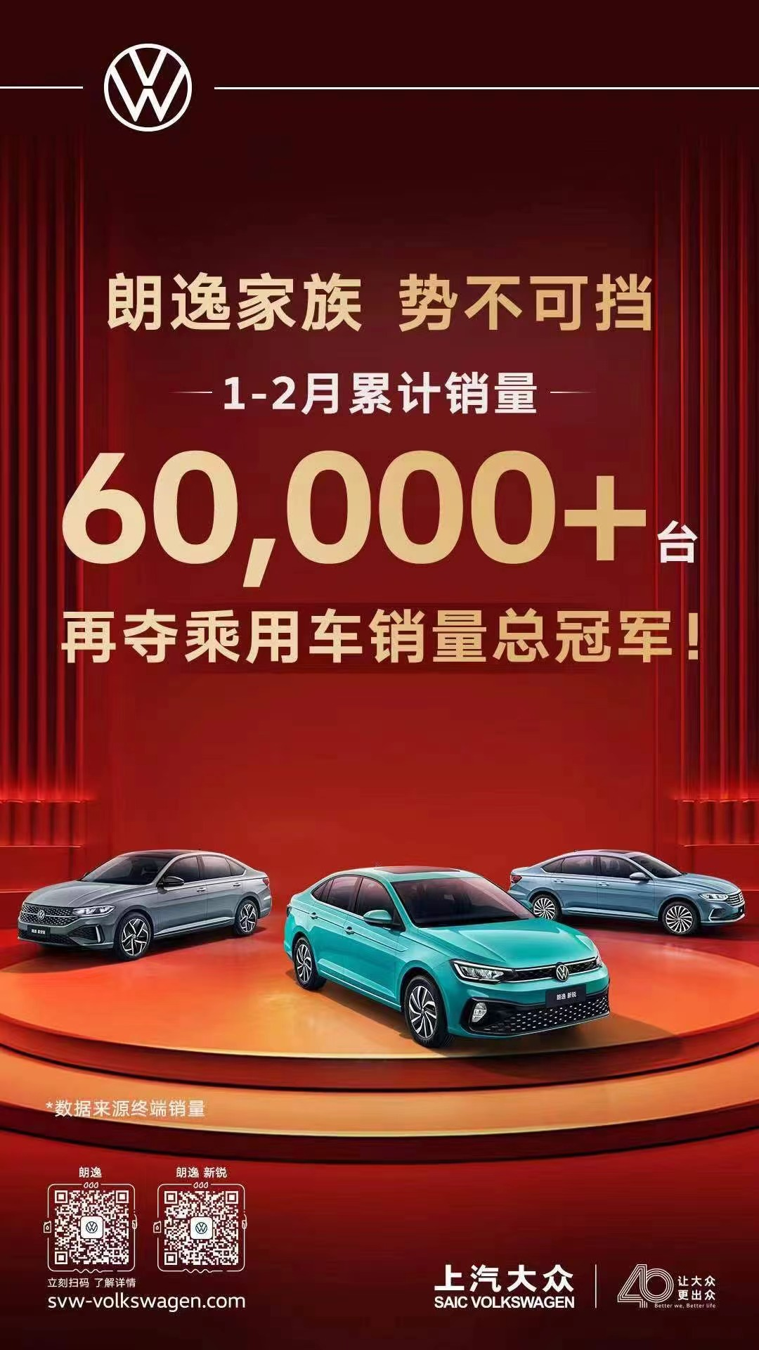 要知道,上汽大众朗逸从诞生之际就一直扎根在中国市场,从发售至今销量超500万辆,市场保有量不言而言。目前已推出了三代产品,款款皆爆款,月销量一直保持在万辆以上,一直占据紧凑型轿车销量排行榜前列。在上周公布的2月乘用车销量榜单中,上汽大众朗逸开年双月累计销量突破6万台,在1月领先的优势上,再登销量榜首,热销态势证明大众的选择。