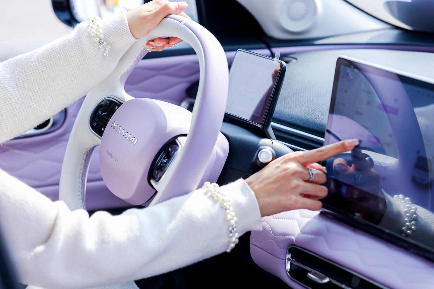 活动当天,东风纳米01幻想紫成为了全场的绝对焦点。独特的幻想紫车色、灵动的车身线条、同级唯一的无边框车门设计、隐藏式门把手……比同级高半级的精致颜值,无一不彰显出这款车型的“颜”霸地位。