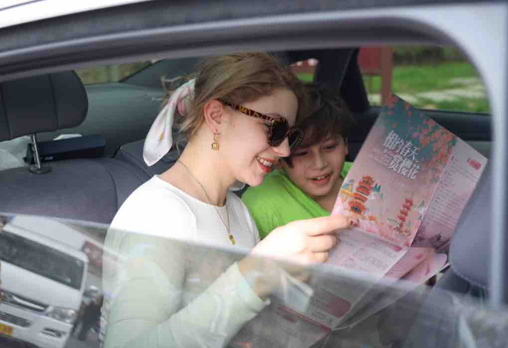 【国际游客乘坐岚图追光“赏樱专驾”】