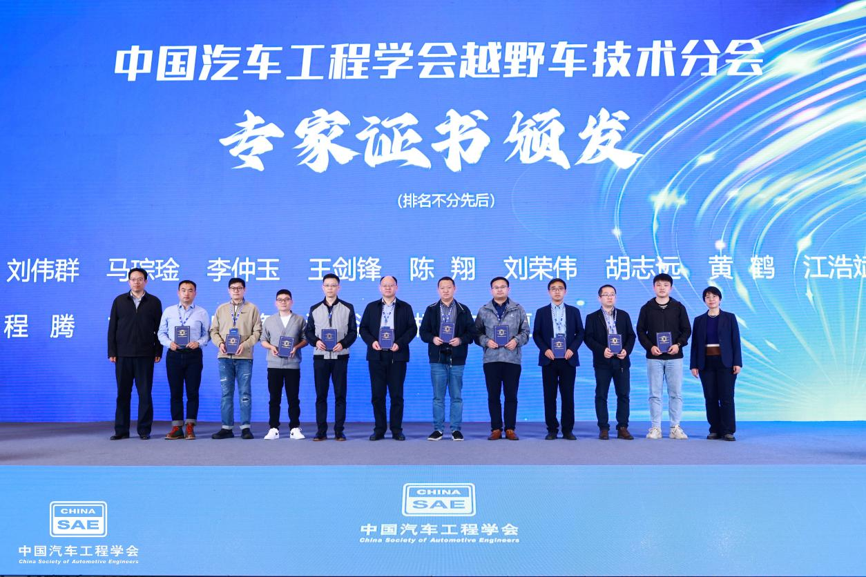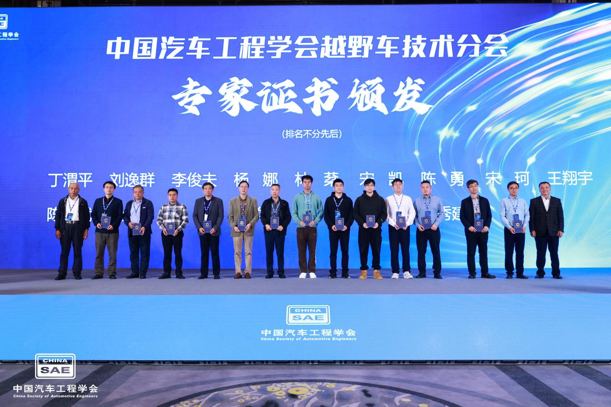 本届大会期间,中国汽车工程学会副秘书长战静静、北京理工大学机械车辆学院副院长兼越野车技术分会主任委员王伟达、中国汽车工程学会越野车技术分会秘书长陈思忠、北京汽车集团越野车研究院院长兼越野车技术分会副主任委员王璋向新晋中国汽车工程学会越野车技术分会专业颁发证书。