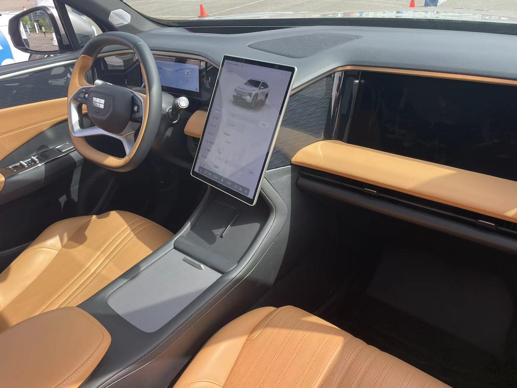 吉利银河L7龙腾版的内饰设计简洁大方,大部分功能都集中在三块大屏和方向盘上,车内配备10.25英寸的液晶仪表屏幕,13.2英寸的中控竖屏,同时还有一块横向的16.2英寸副驾娱乐屏,车机使用了高通骁龙8155芯片,内置银河NOS系统,支持智能语音远程控制,OTA升级的功能。