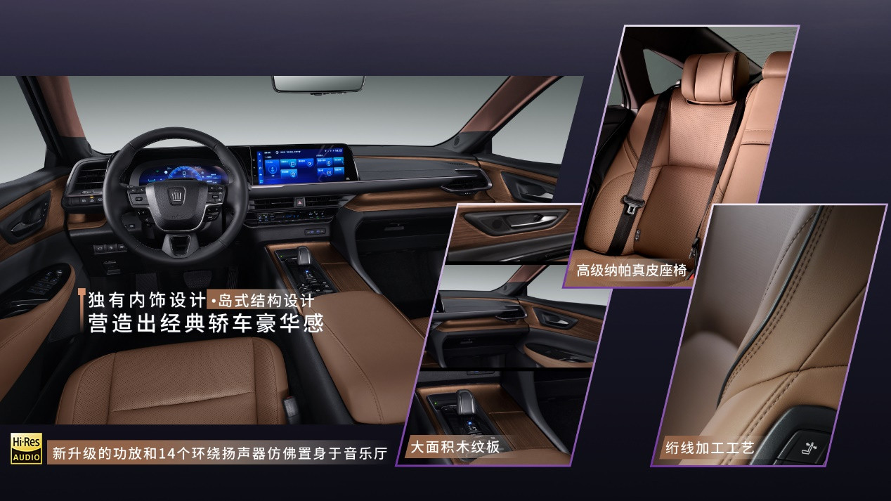 所见方面,基于TNGA-L平台打造的全新皇冠,拥有超越同级的宽大车身和超长轴距的后驱轿车外形,呈现出低矮宽阔的车身姿态,营造了一汽丰田最高级别旗舰轿车的威严与气势。同时,锤头状前脸设计和Under Priority大梯形格栅,彰显出皇冠应有的旗舰风范。由外及内,全新皇冠采用岛式结构设计,从仪表板、中控台到车门,铺装了大面积木纹板。座椅使用触感一流的高级纳帕真皮,辅以绗线加工,新升级的功放和14个环绕扬声器,可让用户仿佛置身于音乐厅。