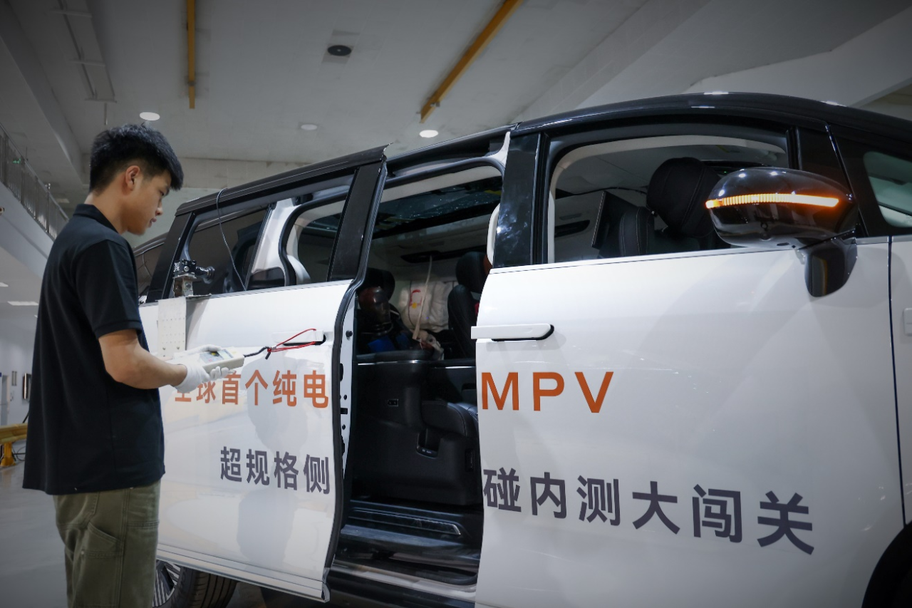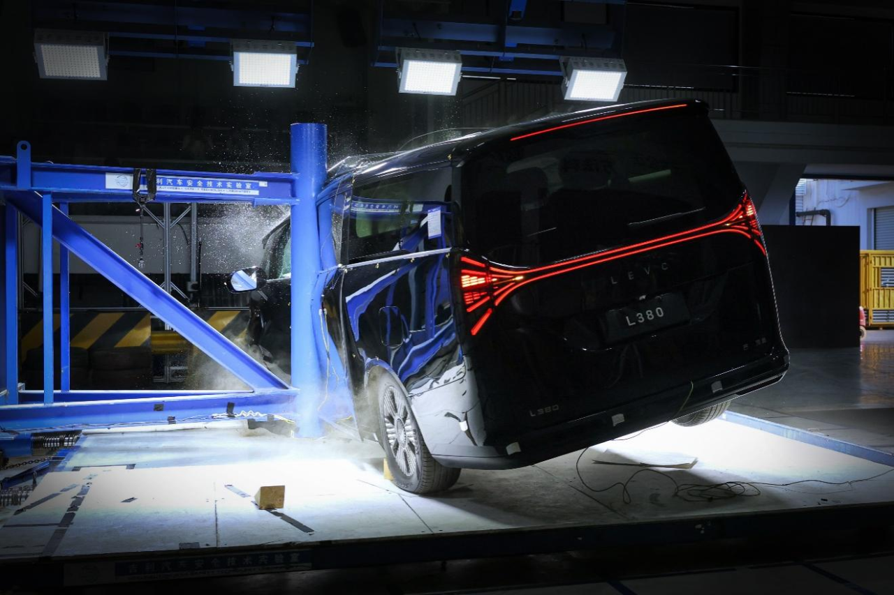 L380挑战全球首个纯电MPV双柱侧碰内测