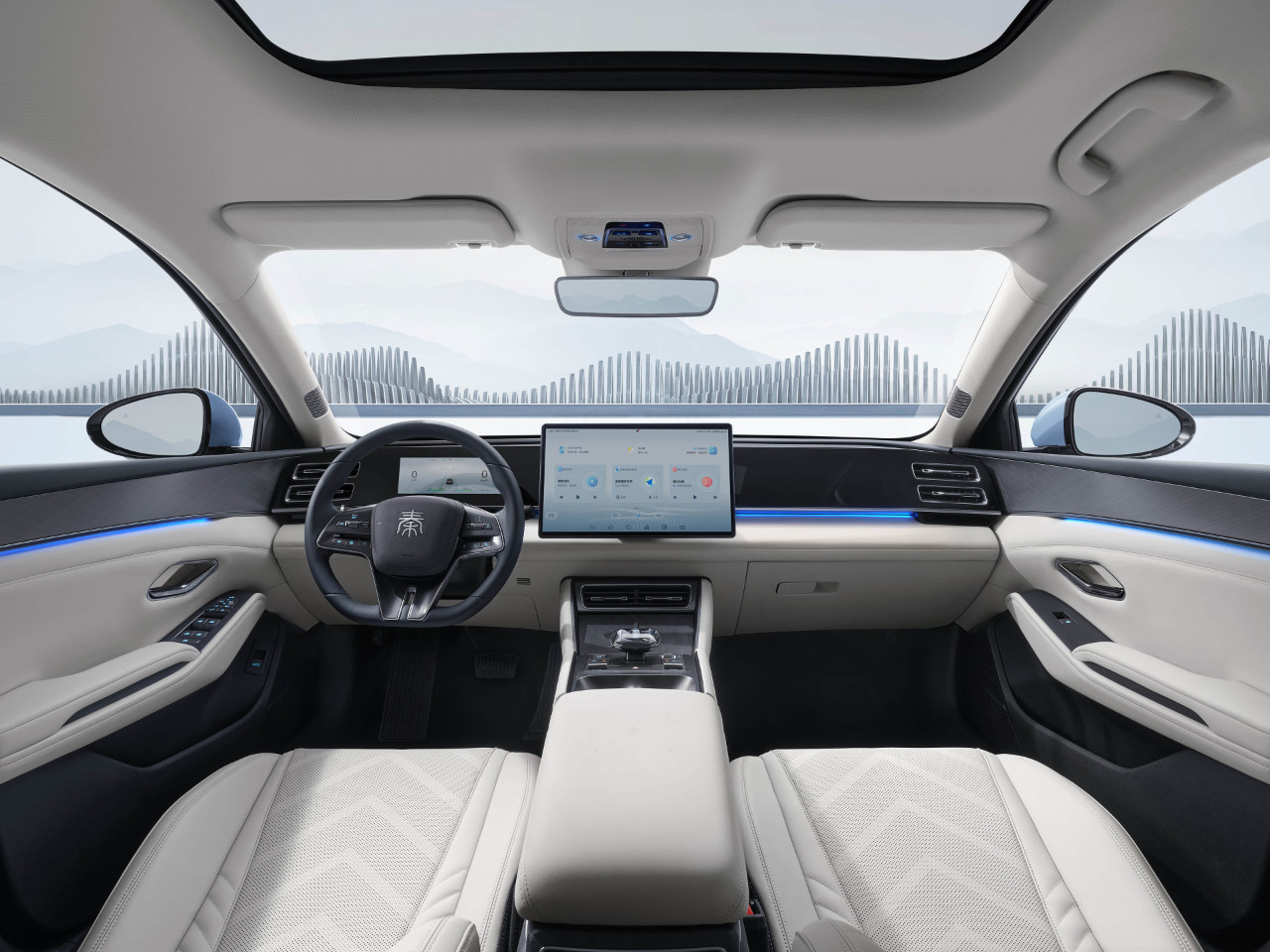 秦L为插电混动中型轿车,全系共5款车型,指导价区间9.98-13.98万。车身尺寸4830*1900*1495mm,轴距2790mm。其实有一说一,秦L尽管官方标称是中型车,即B级车,但它的身材和轴距其实达不到B级车标准,严格来说它应该叫A+级轿车。相比起前代秦PLUS,它肯定是要大一圈的,但相比起荣威D7,五菱星光这种真正的中型轿车来说,它尺寸上还是明显小一圈,所以大家把它当做是A+级车看就好。