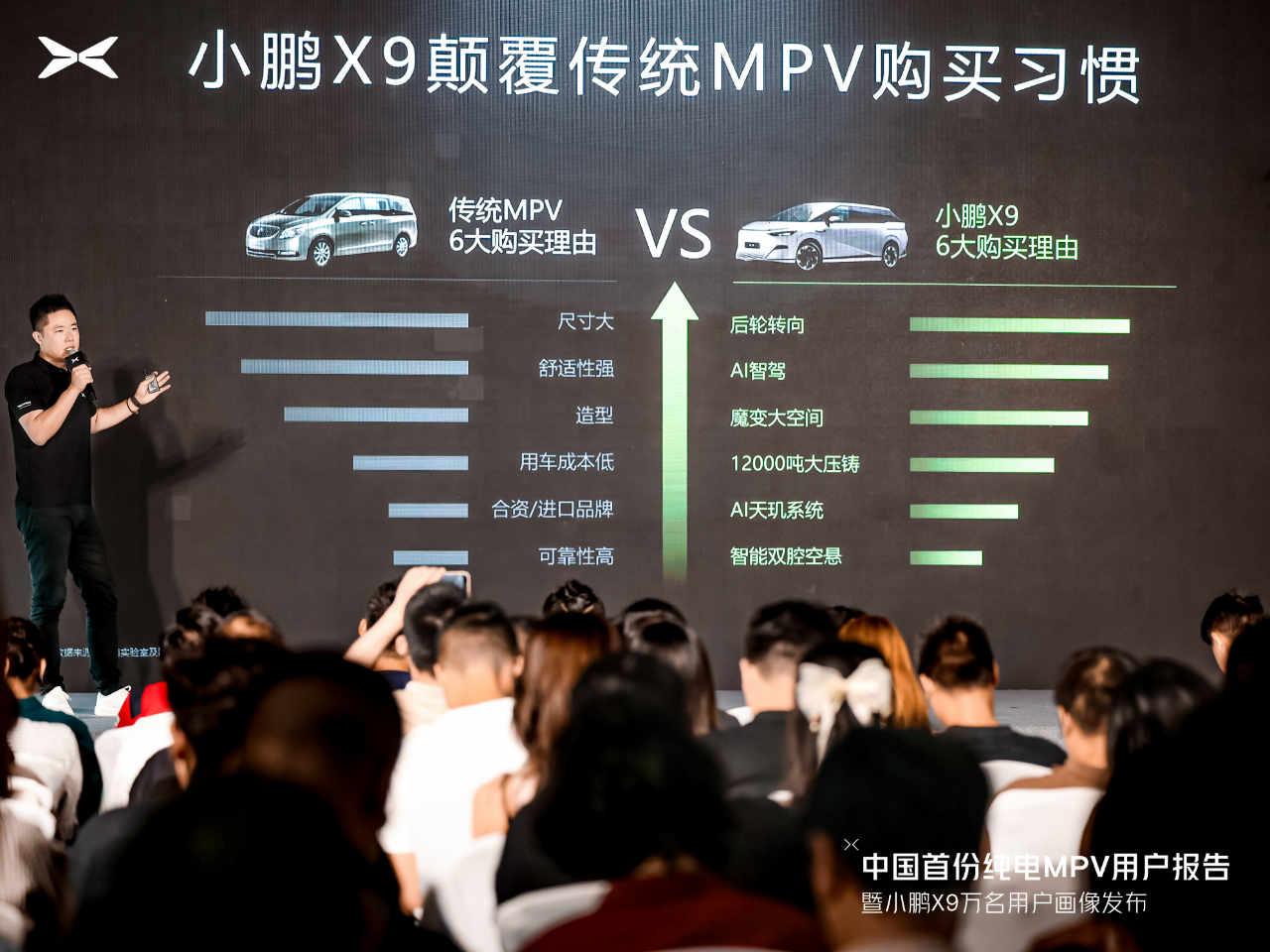 小鹏汽车经过10年的持续探索,在智驾及技术上保持领先,有效洞察快速发展的用户真实需求,不向现实妥协,为市场提供最好的产品。通过中国首份纯电MPV用户报告暨小鹏X9万名用户画像发布,助力智能新能源行业清晰、精准地洞察高端纯电MPV市场的发展趋势,持续为更多用户带来超越期待的产品与体验。