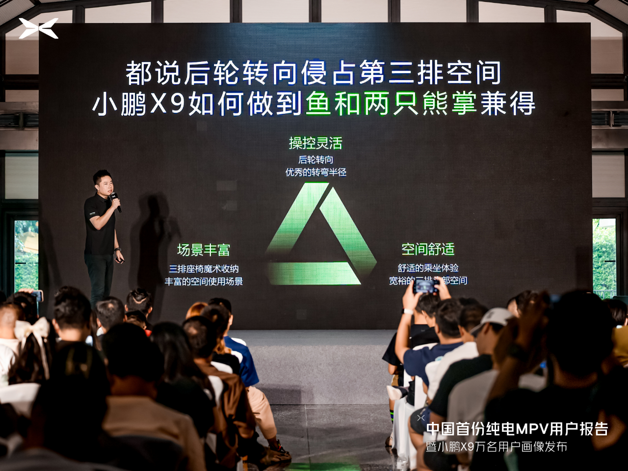 在活动现场,小鹏X9产品营销总监郑荣卿表示,小鹏X9通过三大核心技术突破,成功实现了大7座品类创新,为高端纯电发展找到了最优解,让年轻人、女性用户、90后购买大7座变成可能,相信随着小鹏X9被更多人所熟知,高端纯电车市场有望迎来更快突破和增长。