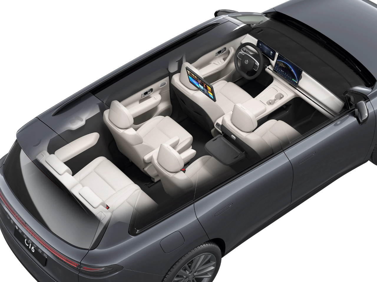 亮点配置上,其实这车可以说浑身都是亮点,首先,C16全系五连杆后悬架,安全气囊给得很够。全系L2级辅助驾驶系统,部分配置还有激光雷达,能实现更高水准的辅助驾驶功能(分别是增程和纯电的顶配版)。至于其他的绝大多数配置,C16基本上是直接看齐25万级的中大型SUV车型的,同时8295芯片也是全系标配。