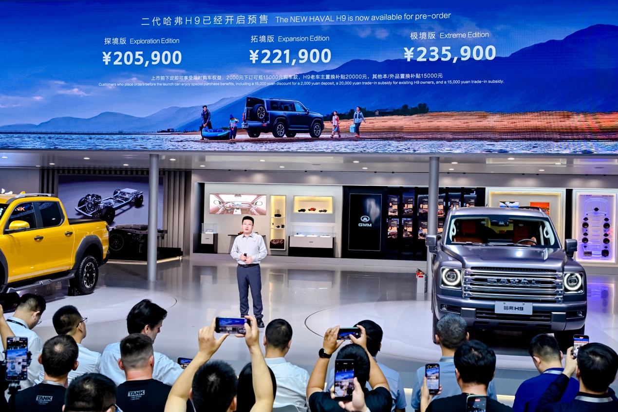 目前二代哈弗H9已经开启预售,探境版20.59万元,拓境版22.19万元,极境版23.59万元;上市前下定即可享受限时购车权益,2000元下订可抵15000元购车款,H9老车主置换补贴20000元,其他本/外品置换补贴15000元。