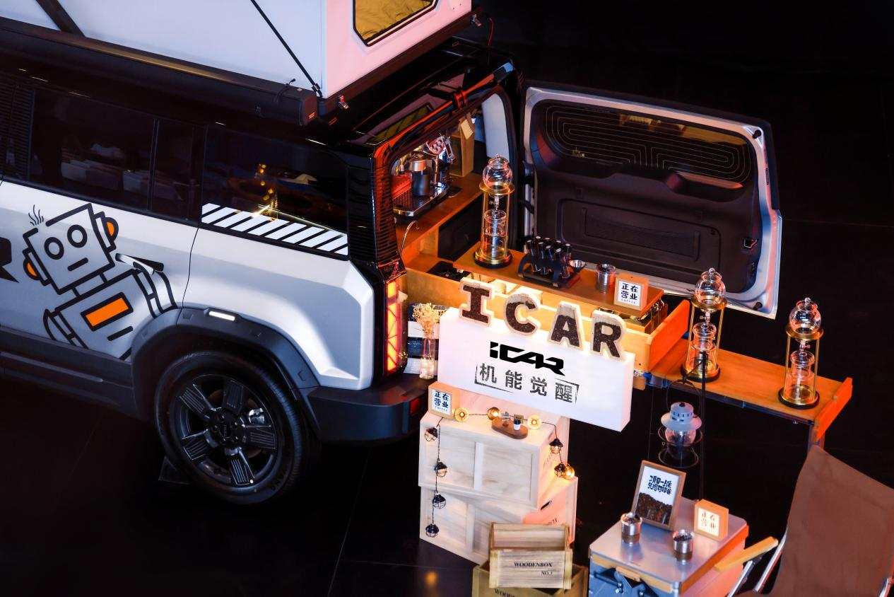 车展现场,iCAR 生态联合首秀亮相,iCAR共创伙伴“会买车”推出了基于iCAR 03打造的“会买车咖啡创业版”,满足年轻人在户外拥有随时停下、随时随地轻松一下的情绪自由的同时,更能够提供极具想象力的创业平台,让年轻人随时玩、随时野,也可以随时随地搞事业。