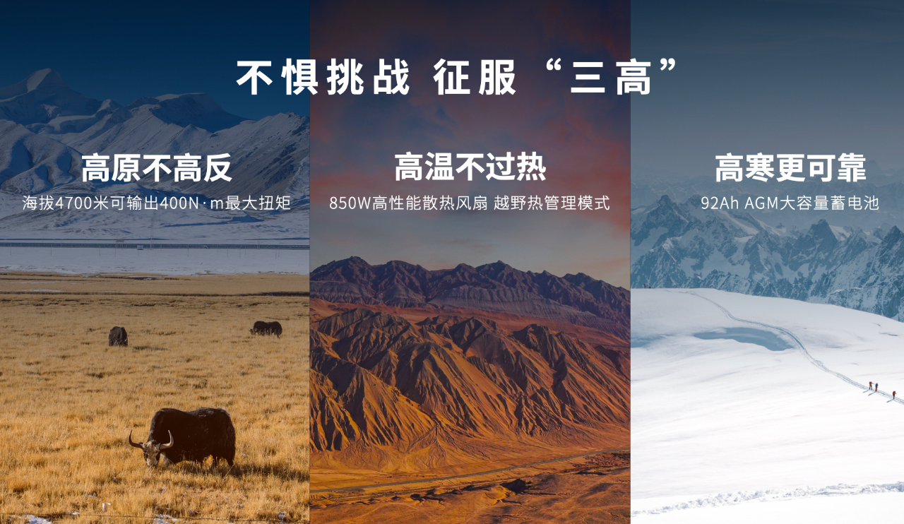 2.4T越野炮不仅是一次动力升级,更是性能的全面跃升,无惧高寒、高原、高温等极端环境。2.4T越野炮配备同级领先的AGM大容量蓄电池,容量高达92Ah,具备更高的电容稳定性、低温可靠性,北方寒冬冷启动一键搞定;高原山区空气稀薄动力易衰减,2.4T越野炮进行专项升级,海拔4700米高原可输出400N·m最大扭矩,高原不高反;配备850W高性能散热大风扇,风扇功率提升42%,匹配行业首创的越野热管理模式,炎炎夏日重载长途越野奔袭也无忧。