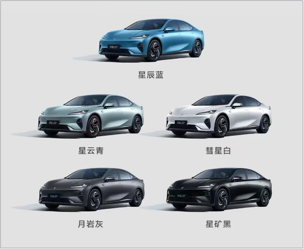 车身颜色方面,深蓝L07提供了5种配色可选,除了星云青、彗星白、月岩灰、星矿黑的经典车色,此次带来了全新的星辰蓝。