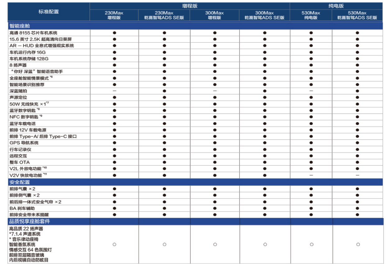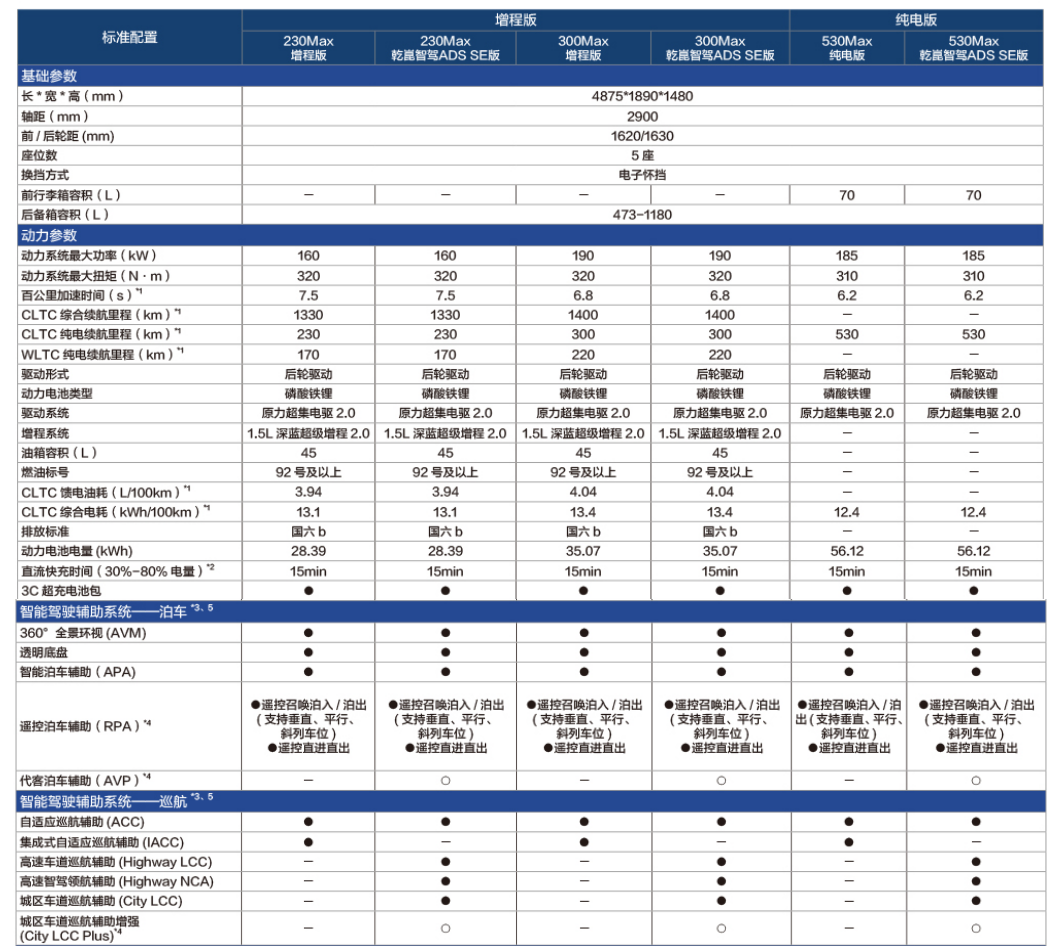 纵观深蓝L07全系配置,不难发现其精心规划的6款车型矩阵,核心差异聚焦于动力性能与智能驾驶技术两大维度。动力层面,增程版与纯电无疑是大家需要重点区隔的。对于那些在日常通勤之余,还频繁面临长途驾驶挑战,或是深受续航里程不足及补能便利性困扰的消费者而言,深蓝L07的增程版车型无疑是理想之选,它巧妙地融合了燃油发动机与电动机的互补优势,增程版馈电油耗低至3.94L/100km,增程车型纯电续航高至230/300km,标配同级首发3C超充,综合续航超1400km,确保了无论路途多么遥远,都能无忧前行,是长途旅行者的理想伴侣。纯电车型则是为那些更加注重环保出行、日常通勤距离适中,且享受电动汽车静谧驾驶体验的用户精心准备的。