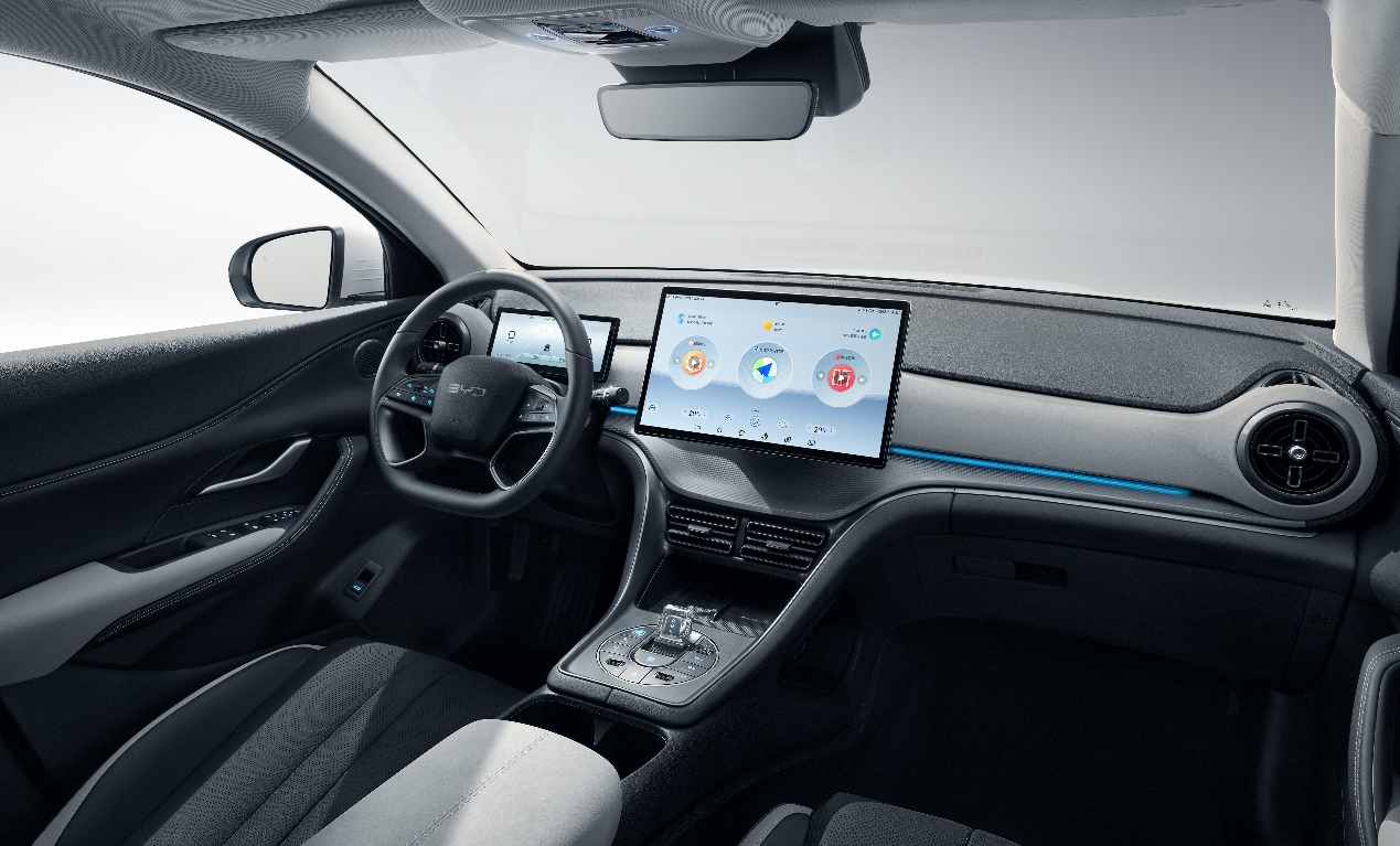 内饰方面,环绕式海洋律动座舱的线条舒展自然,“海洋之芯”中控布局清晰明了,31色律动式情景氛围灯通过反射让光线更柔和,更有高级感。车内随处可见的水波纹元素巧妙地呼应海洋美学主题,结合稳重大气的陨石黑内饰配色,有着独具魅力的视感享受。