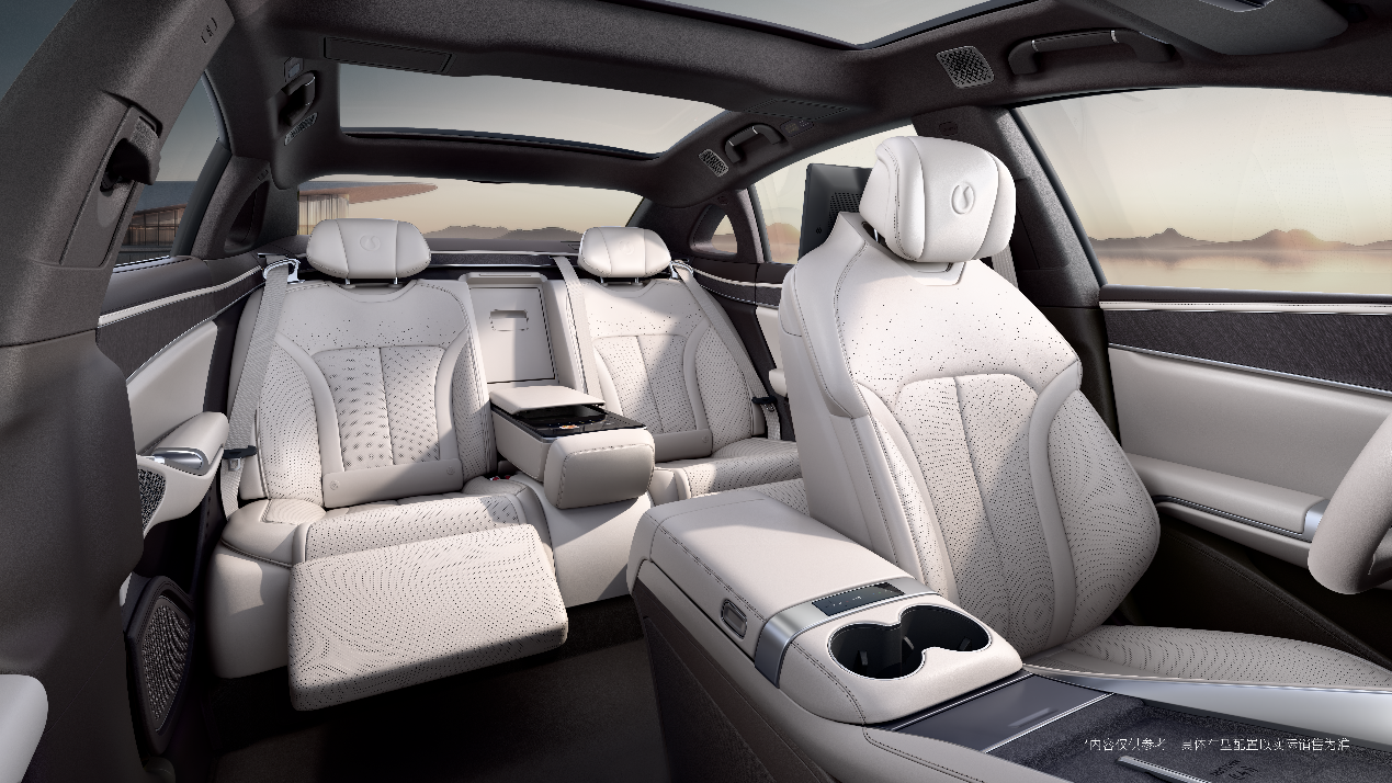 更重要的是,后排增配了双桌板,让后排成为应用场景丰富的多元空间,在商务场景下,它是便捷的移动办公区,方便用户处理文件、使用电脑办公,使出行与工作无缝衔接,展现专业性;对于家庭用户而言,它可以放置玩具、书本、食物,为家人孩子玩耍、阅读、进食带来了极大的便利。另外,爱美的女士们还能拿它当做临时化妆台,随时变美。后车窗电动遮阳帘支持一键升起和下降,不仅增强了隐私保护,同时也改善了后排的防晒条件,提供更加舒适的乘车环境,便利性和豪华质感俱佳。这些便利性配置不仅充满科技的想象和氛围感,同时也更能满足商务接待等场景下的高端气质和便捷性需求。