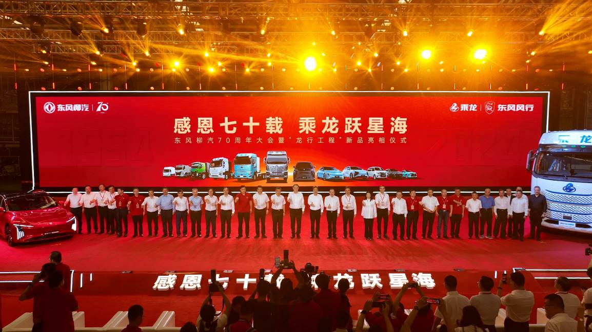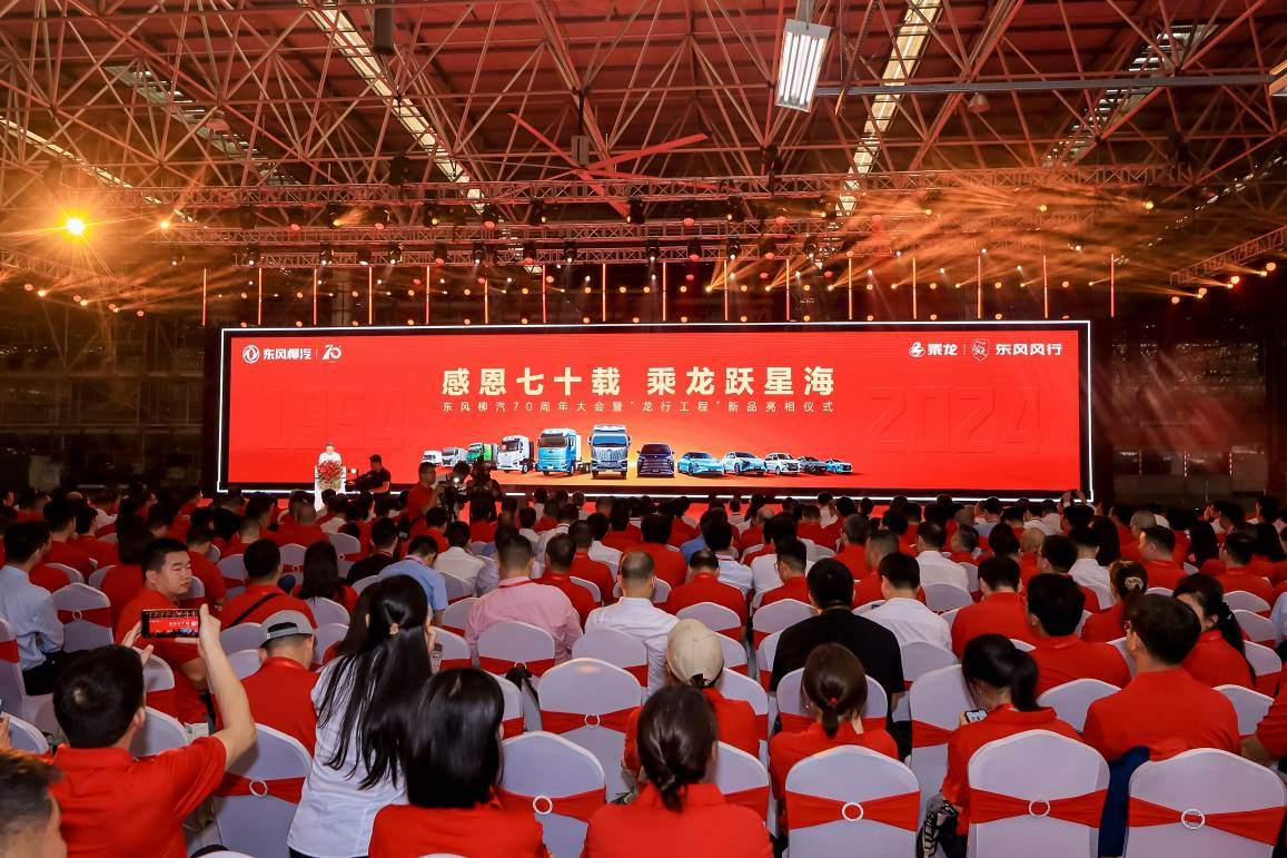 为了庆祝这一历史性时刻,2024年11月16日,东风柳汽70周年大会暨“龙行工程”新品亮相仪式在柳州市隆重举行。来自国内外的合作伙伴、客户代表以及媒体与东风柳汽全体员工齐聚一堂,共同回顾了东风柳汽70年的辉煌成就,见证“龙行工程”的最新成果,并擘画了东风柳汽在新时代背景下的宏伟发展蓝图。