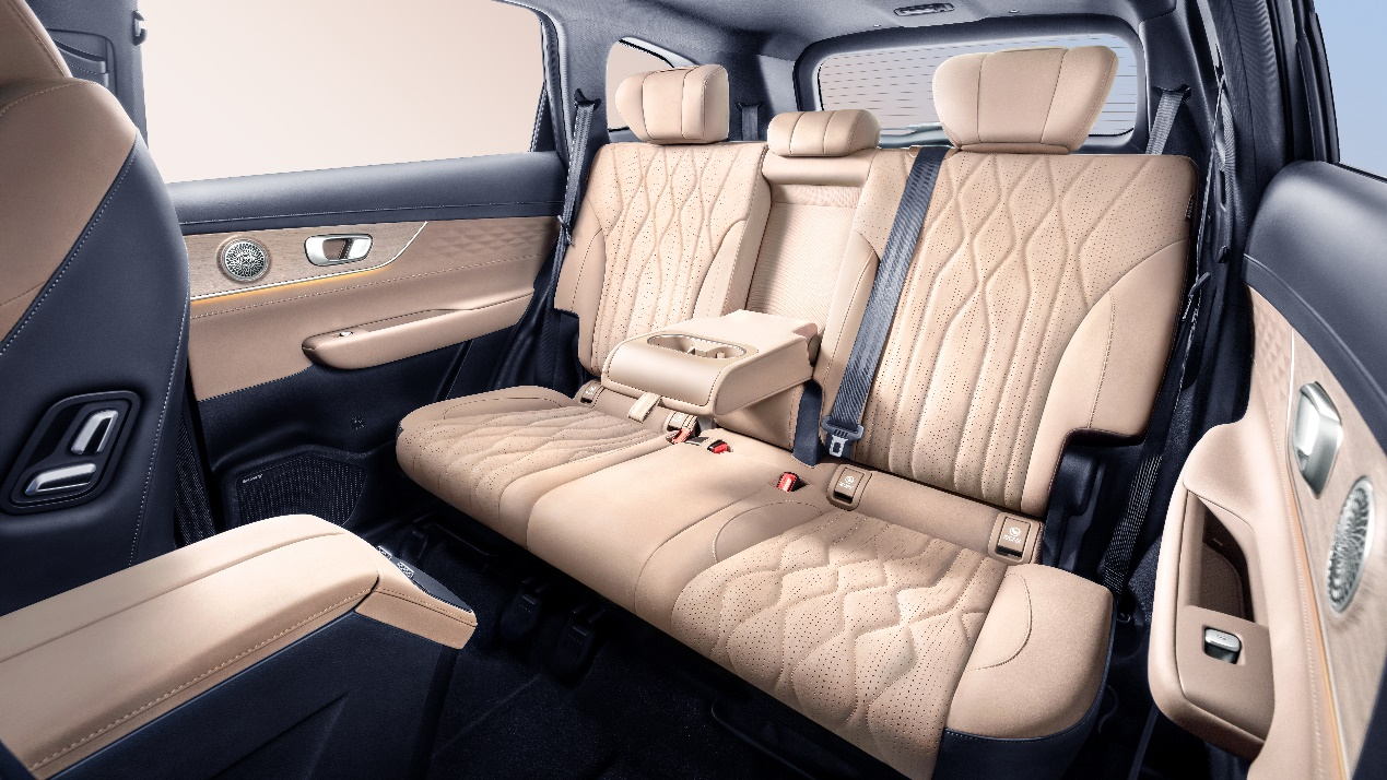 风云T8拥有4730x1860x1747mm的超大车身尺寸与2710mm的越级轴距,即使后排乘客也能拥有宛如商务舱的腿部空间。同时,风云T8 全车软包面积达78.9%,真正做到了所触皆柔软,并配有女王副驾10点按摩+电动腿托,其支持5种按摩模式与3种力度可调,让用户的家人在出行途中也能卸去一身疲惫。为了进一步提高实用性与舒适性,风云T8配有副驾老板键,支持二排用户一键调节副驾座椅,且7座版二排还支持椅背、前后随心调节,让二排用户享受舒适的同时,也能在需要时为三排乘客带来更宽舒的乘坐空间。