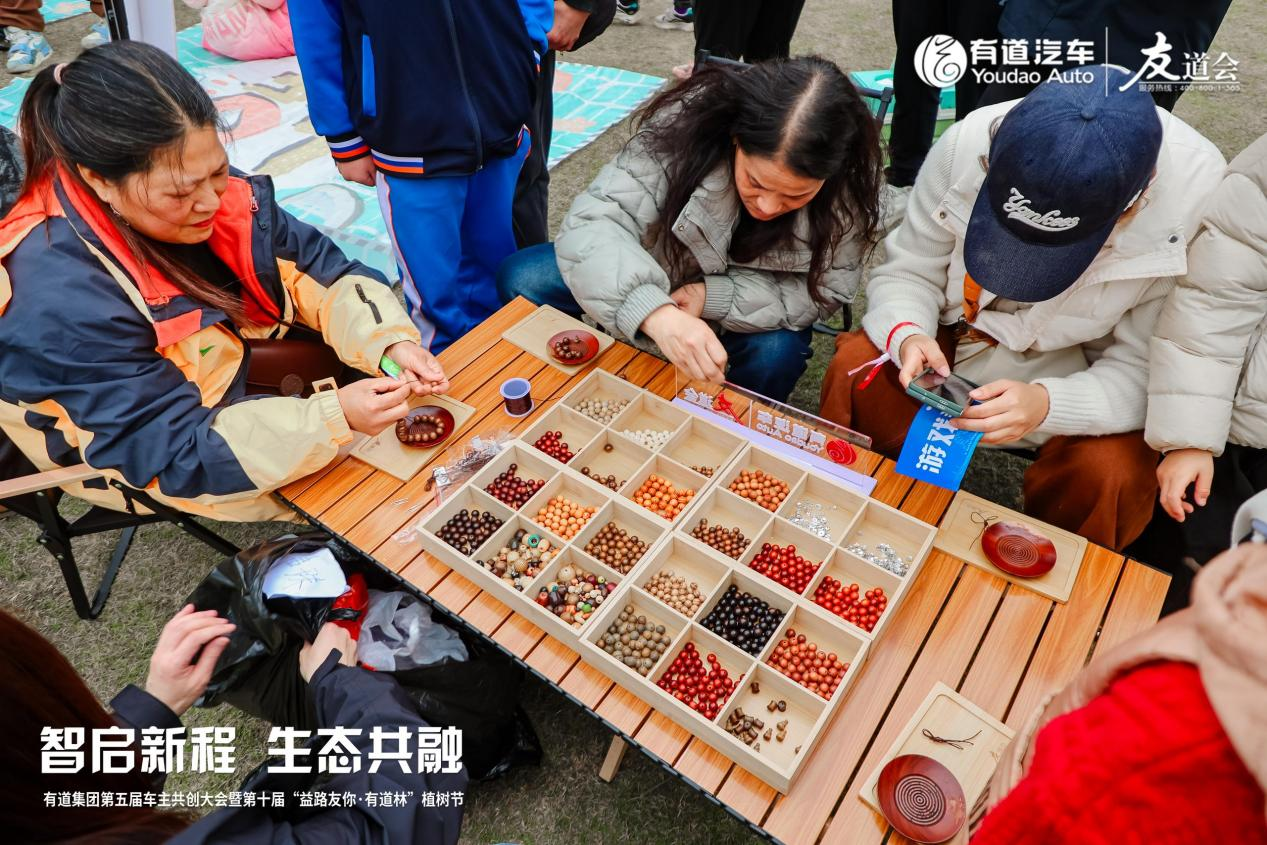 在现场工作人员的指导下,挑选自己喜欢的珠子