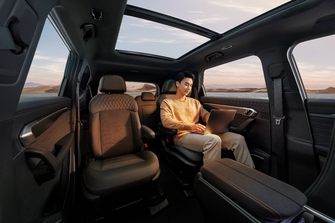如果追求更加进阶的豪华空间体验,豪越L尊享款采用2+2+2独立座椅布局,二三排地板均为纯平设计,二排中央通道宽至165mm。值得一提的是,豪越L尊享款还配备了豪华麂皮绒材质,带来云朵般舒享体验。从日常通勤到长途旅行,从城市代步到户外露营,豪越L以全方位的空间解决方案,重新定义大家庭出行标准。
