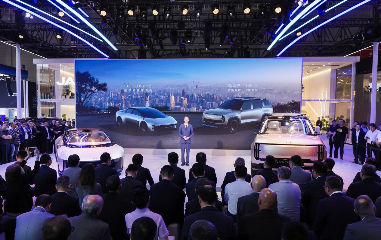 4月23日,2025上海国际车展火热开幕。江汽集团以“时代匠心,全球共赢”为主题,基于全球领先的DEFINE平台打造的两款原型车首发亮相,与华为合作的超豪华品牌尊界首款车型—尊界S800在江汽展台展示。此外,瑞风RF8 PHEV、悍途PHEV等产品也同步亮相。
