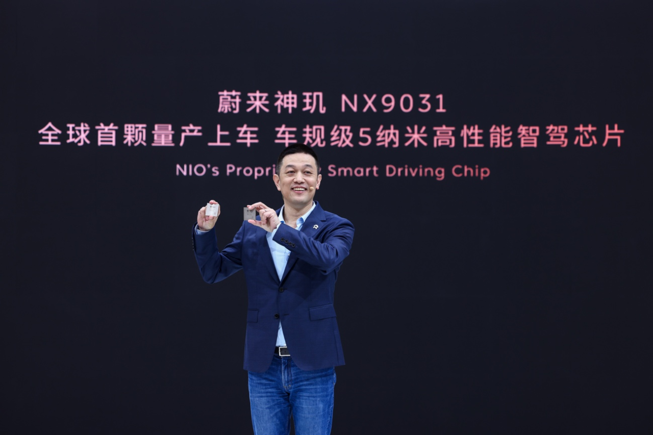 发布会现场,李斌向媒体记者展示了两颗车规级5纳米智驾芯片神玑NX9031,随着该芯片在ET9的搭载,神玑NX9031也成为全球首颗量产上车的车规级5纳米智驾芯片。“去年蔚来创新科技日上我展示了1颗神玑芯片,今天我展示两颗,因为每台ET9上都有两颗。1颗神玑芯片抵4颗Orin X芯片,两颗抵8颗,单颗神玑NX9031和满血版的Thor-X在同一算力水平,比Thor-U早上车数月。”李斌表示,神玑芯片也将搭载于新款ET5、ET5T、ES6、EC6上,为智能辅助驾驶的持续升级提供算力基础。