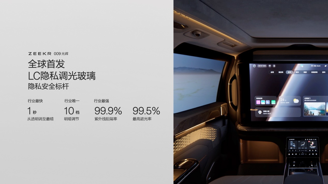 极氪009光辉LC隐私调光玻璃守护用户的隐私