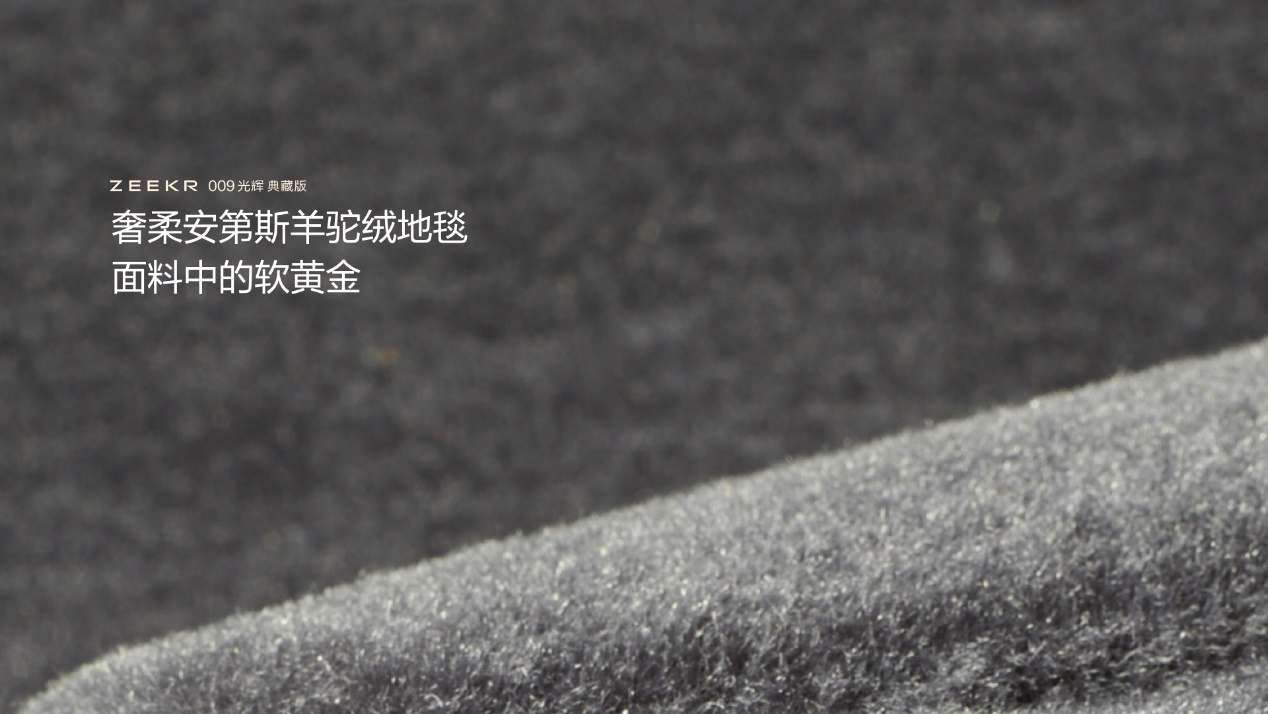 极氪009光辉典藏版的羊驼绒座舱地毯