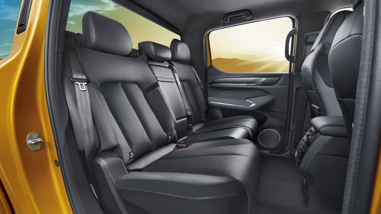 山海炮Hi4-T以乘用车严苛标准打造,提供高端SUV级别的户外出行奢享空间体验。创新双后围设计,配合迷宫式出气口、隐藏式后门缝、车箱与车身间的全密封设计、双层隔音玻璃以及尾翼导流等加持,NVH表现遥遥领先,营造真正深海级静音座舱。首创后排座椅电动调节,最大乘坐靠背角达到33°,舒适度比肩豪华SUV。