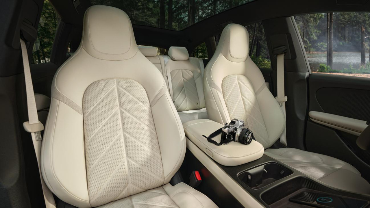 新ET5、新ET5T采用全新环抱式座舱设计。焕新升级「15.6 英寸AMOLED中控横屏」,拥有3K高清分辨率、100%广色域并支持HDR Vivid,行业首创的物理切割圆角造型配合窄边设计尽显精致。标配全新高清「18.8 英寸W-HUD」,支持包括盲点影像在内的丰富信息显示。新增可选800万像素「超高清流媒体内后视镜」,相较传统后视镜视野提高3.6倍,无惧夜晚暗光或后窗玻璃上的雨雾模糊。全新方向盘与怀挡设计,让中央通道拥有更多空间,搭载目前行业最高标准的「双50W风冷无线充电板」,主副驾同时充电无忧。增强版「7.1.4杜比全景声音响系统」,软硬件同时升级并支持全新「Pro EQ个性化调音」,配合全新「数字光幕氛围灯」,支持渐变色彩,有超过1600万种颜色可供搭配,可自由呼吸,也能随音乐律动。此外新车还标配iPhone数字钥匙,支持UWB高精定位和NFC感应解锁。