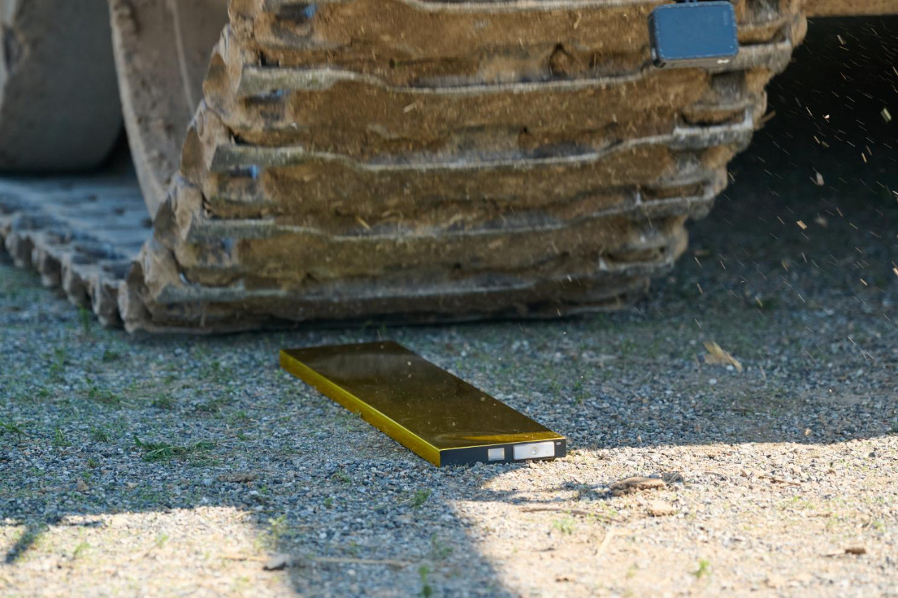 10块神盾金砖电池经受36吨极限碾压后未起火、未爆炸