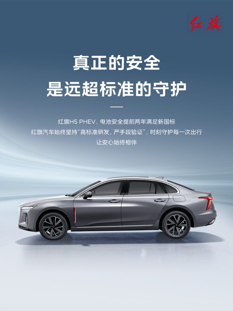 这款中国B级豪华轿车市场的销量王者,累计销量已突破60万辆,是红旗品牌走进千家万户的主力车型——它就是红旗H5。如今,基于全新鸿鹄平台打造的红旗H5 PHEV应运而生,成为新能源时代的超级混动智慧豪华轿车。在研发阶段,红旗就为H5 PHEV设定了严苛标准,提前两年在底部碰撞测试、热扩散测试、快充循环测试中满足新国际标准。