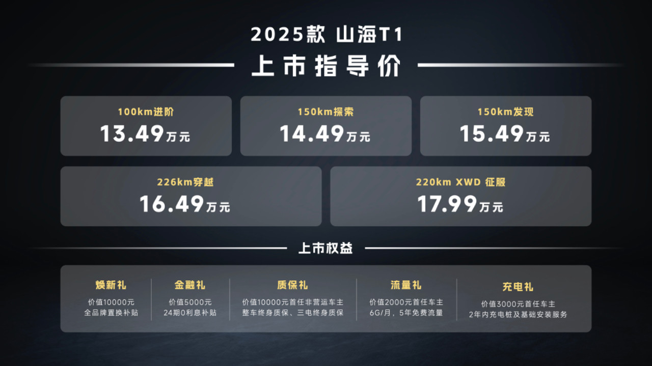 本次活动中,代立宏宣布2025款捷途山海T1正式上市,售价13.49万-17.99万,五大优惠购车政策,也为喜欢方盒子的粉丝带来超值福利。新车型不仅采用了荣获德国红点大奖的外观设计,也是首款纯电续航超220km的混动方盒子。三电机加43.2度大电池的越级配置,加上捷途独有的XWD全自动智能四驱黑科技,造就了同级方盒子的配置天花板。2025款捷途山海T1不仅为插混方盒子树立了更高的产品标准,也展现出推动方盒子品类价值升级的坚定决心。