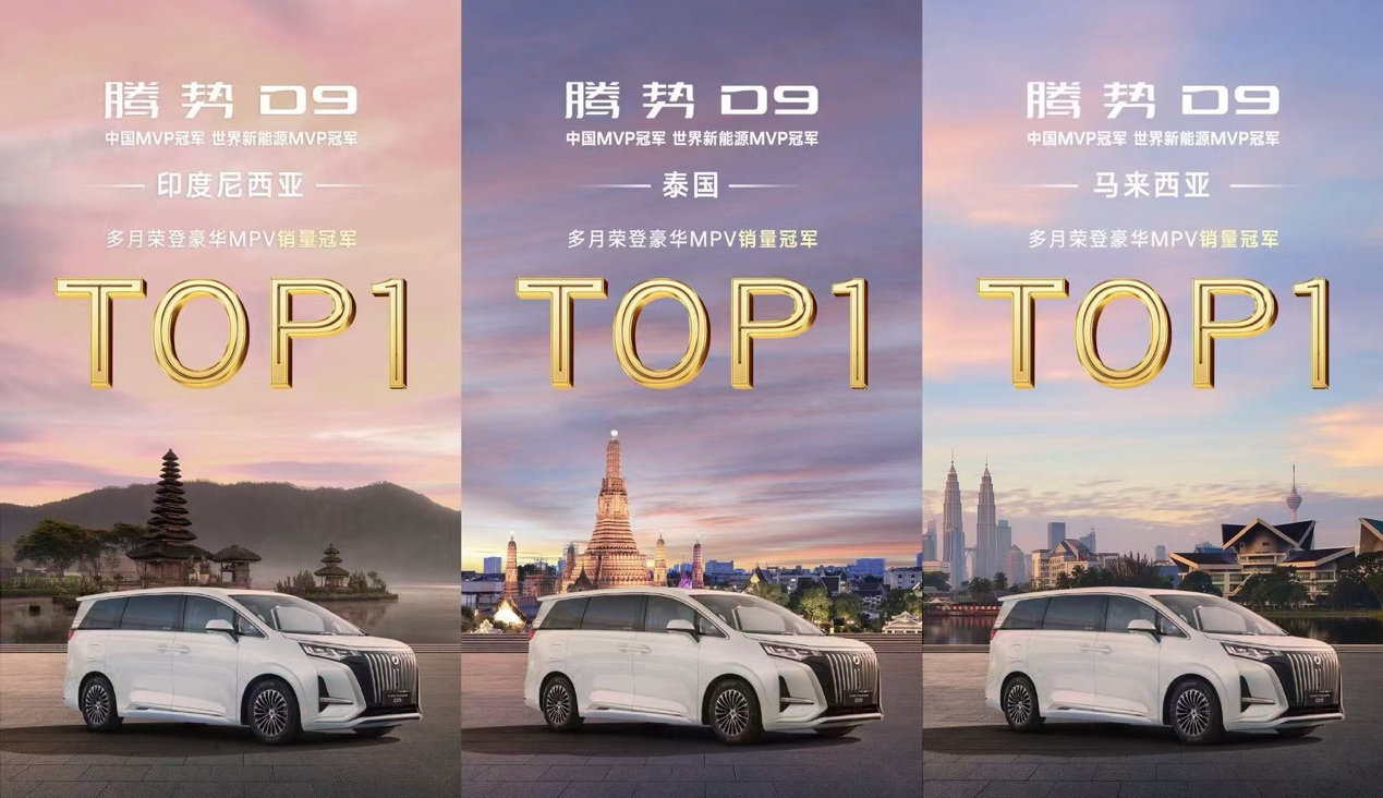 从连续两年斩获中国MPV销量、保值率、用户满意度“三冠王”,到拿下中国品牌40万-60万级高端市场销冠。从中国走向世界,腾势D9不仅在国内持续领跑,还以强劲的势头,将科技豪华带向全世界。最新数据显示,腾势D9横扫马来西亚、印度尼西亚、泰国等亚太多国,荣登多国豪华MPV销量冠军,不仅在海外市场超越传统豪华标杆埃尔法,更标志着腾势D9从中国MPV冠军向世界新能源MPV冠军的华丽跃升。同时,腾势D9接连荣获中国香港2024超卓汽车大奖,以及新加坡年度MPV大奖,口碑和影响力在全球市场遍地开花。