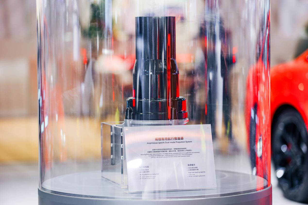 纵横两栖黄金增程CEM-O则配备2.0TD混动专用发动机、140kW大功率增程器、越野专用800V 6C双层麒麟电池、轮端扭矩18000N·m矢量四电机,更有两栖专用航行推进器加持,轻松实现两栖越野新路径。