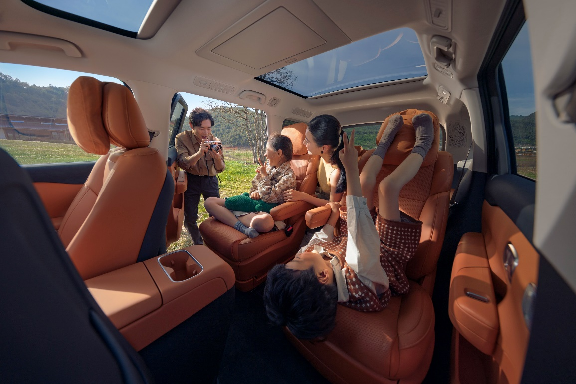 唯一标配电动一键大床模式:后排座椅支持一键电动下沉前移,放倒后可形成2米纯平大床,瞬间化身“移动卧室”;唯一配备后备厢观影模式:户外露营后排成床时,可利用床垫、撑杆,并搭配15.6英寸后排屏与21扬声器PSS豪华音响组合,打造沉浸式家庭影院;唯一搭载1663L超大百变后备箱:通过后排座椅放倒及多层储物格等设计,可拓展出无限想象的空间,可同时放置多辆公路自行车,露营、骑行、钓鱼、滑雪、冲浪等户外场景装备统统装得下。