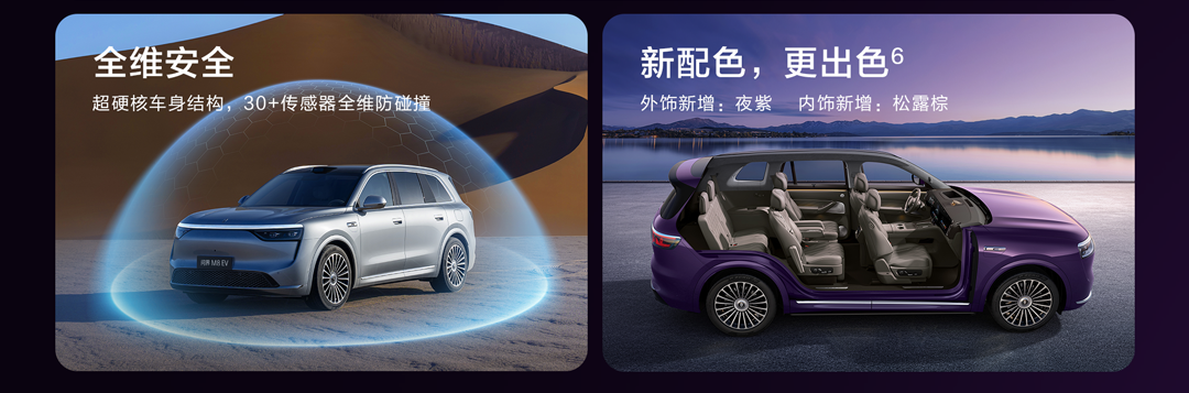 此外,问界M8纯电版外饰新增夜紫配色,内饰新增松露棕配色,提供用户更多选择。