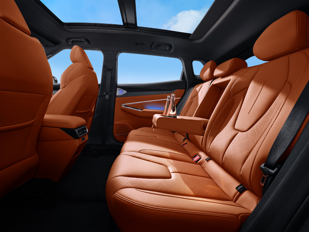 得益于85.4%同级最大得房率和2707mm超长轴距,新车的空间较同级提升15%,以A级车尺寸实现B级车宽适体验。其后排采用纯平地板设计,即便三位身高1.8米的男士并排乘坐,也能舒展自如。525mm超长后排坐垫充分承托大腿,久坐亦无悬空疲惫感。后排座椅放倒后,1930mm纵深的平坦空间秒变“1.9米移动大床房”,家的松弛感无处不在。