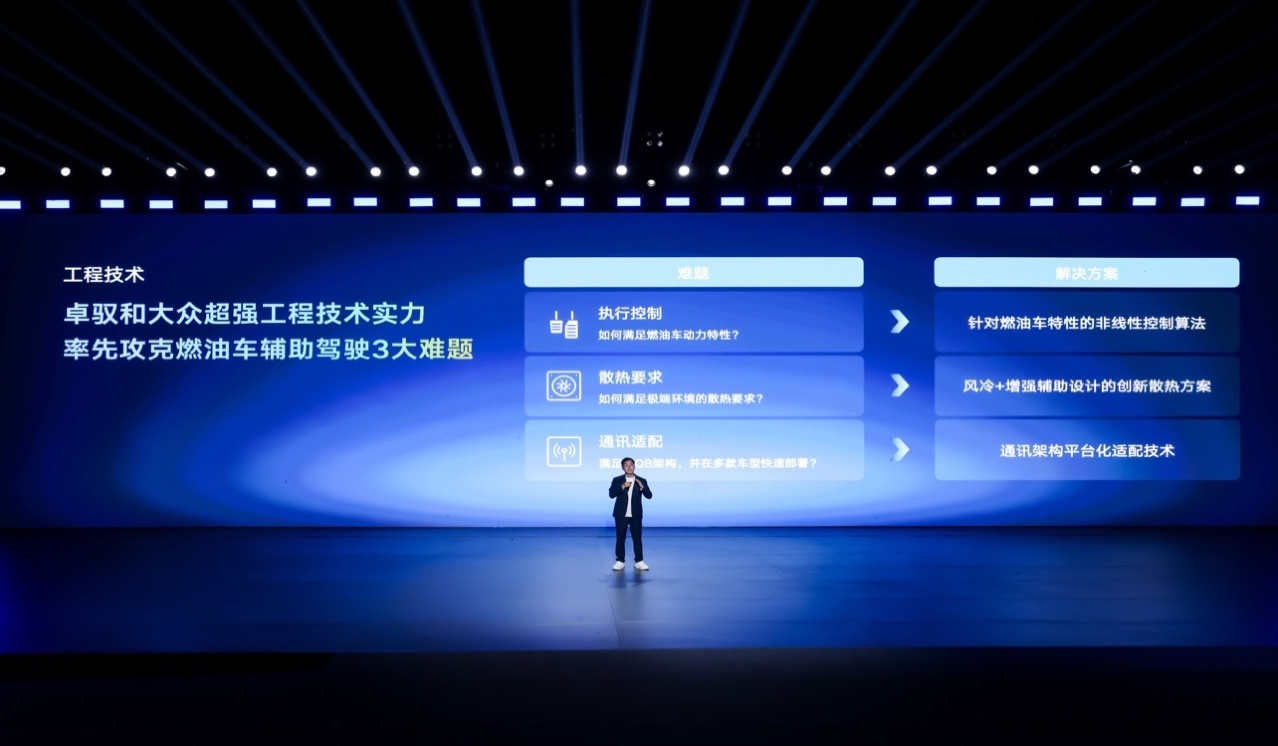 作为发布会高光环节,IQ.Pilot增强驾驶辅助系统上车标志着一汽-大众和卓驭正式开始了“油车智能”的新篇章。一汽-大众技术开发总监邓国辉先生和卓驭科技副总经理马建云先生,联袂登台讲解了IQ.Pilot增强驾驶辅助系统的功能场景、技术亮点以及双方实现油车智能所付出的努力。