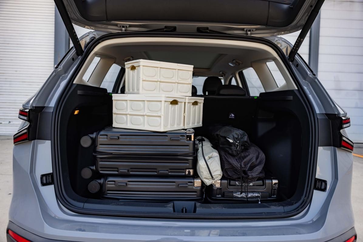 同级领先豪华怀挡设计让中控台更简洁,上下层中空设计提升空间利用率,可轻松容纳大件物品。25处储物空间如雨伞收纳位、数据线隐藏式穿线孔等,让车内时刻保持整洁。其中,654L后备箱特别受热爱露营的媒体关注,其采用纯平开口设计,搭配电动尾门,取放物品非常便捷。