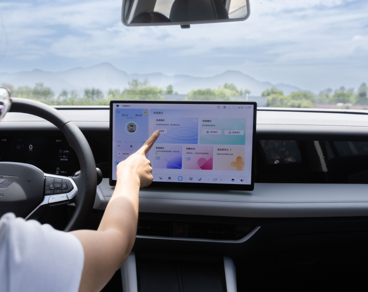 试驾时,媒体全程没有枯燥的机械操作感,反而沉浸在AI互动的乐趣中。当开启休息模式时,灯光渐暗,音乐响起,座椅自动调到舒适角度,为媒体创造出惬意的私人空间。下车忘带手机,还会温柔提醒。