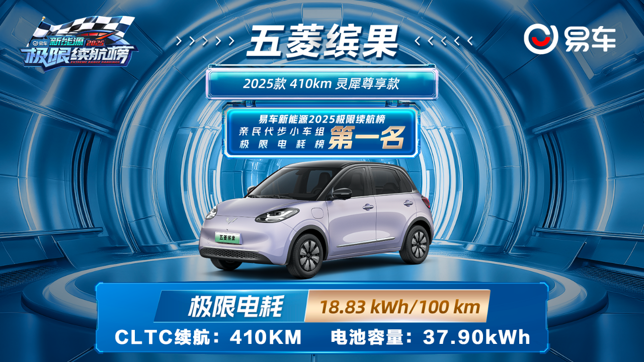 【2025年8月11日】日前,《2025 易车新能源极限续航榜》测试结果出炉,缤果 2025款 410km灵犀尊享款凭借卓越的能耗控制能力,以18.83kWh/100km的极限电耗成绩,强势斩获《亲民代步小车组》极限电耗冠军,这一成绩,这不仅是对缤果技术实力的权威认可,更是五菱对用户“续航靠谱”核心需求的有力印证。对用户而言,这意味着日常用车更省心、更经济;在相同电量下,缤果比同级车型行驶更远里程,有效减少充电频次,省去频繁跑充电站的麻烦,省时省力;同时,更低的电耗直接带来更低的用车成本,精打细算,出行更无忧。
