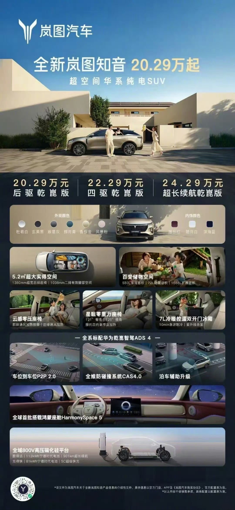 8月28日,2026款岚图知音正式上市!官方指导价为20.29-24.29万元。