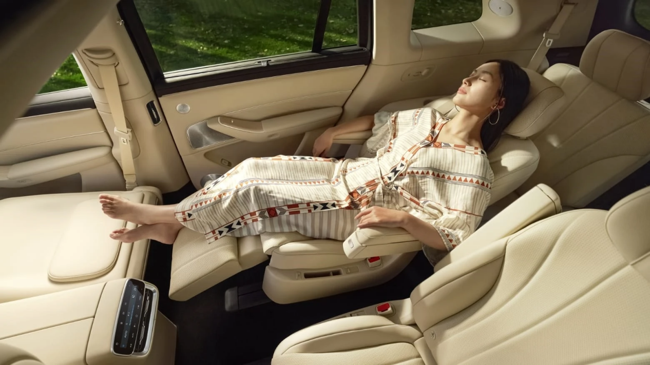 六座版堪称“舒适三居”,前排935mm、二排900mm、三排840mm的乘坐空间彻底告别“第三排小板凳”尴尬,332mm的三排坐姿高度保障视野通透;纯平地板与隐藏式滑轨设计,让老人孩子进出第三排从容不迫。更令人惊叹的是百变模式:一排与二排可拼成1950mm休憩大床,三排折叠后与后备箱形成1437mm床位,满足长途休整或露营休憩需求。