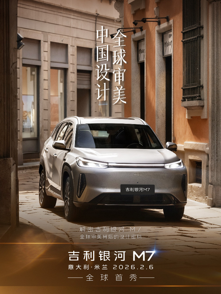 2月6日,在全球设计思潮交汇的米兰,吉利银河M7迎来全球首秀。作为百万基盘之上,银河M系列承接旗舰M9之势、重磅落子主流市场的战略车型,银河M7定位“中级SUV颠覆者”,集金砖电池、金算续航和金牌驾控三大“黄金价值”于一体,以颠覆者的姿态重新定义中级电混SUV标准,为用户带来超越期待的高价值体验,新车计划于2026年上半年上市。