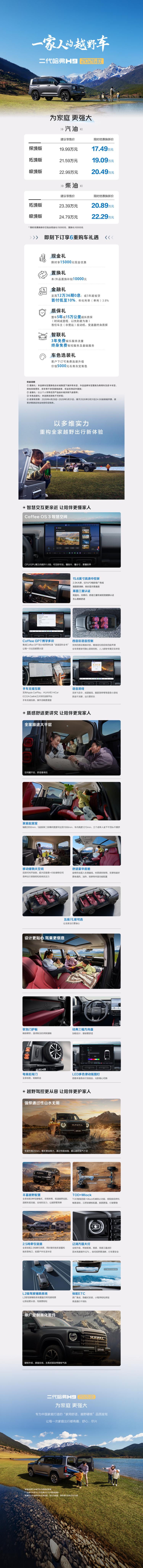 从2014年打破合资壁垒,一举填补国产汽车在高端硬派越野领域的空白,到如今成为定义家庭越野的市场标杆,哈弗H9见证了中国越野用户、越野文化、国产越野技术的全方位成长与成熟。二代哈弗H9 2026款的推出,它既有硬核越野的底气,又有家用舒适的温度,持续满足了家庭越野用户不断升级的“家用+越野”的双重需求,变得更舒适、更可靠、更温暖、更强大。未来,它将继续引领中国家庭越野市场,陪伴更多中国家庭奔赴山海,让越野不再是一个人的狂欢,而是全家人的共同成长。