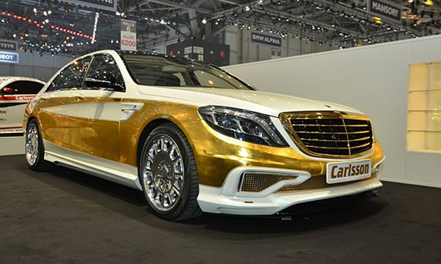 去年土豪金流行以来,新的一年土豪金的风潮依旧不减!德国改造厂Carlsson又再一次抓住了中国人的胃口,专为中国客户打造了一款基于奔驰S600改装而成的土豪金轿车,并将其命名为Versailles (凡尔赛)。Carlsson Versailles车身使用了1000多张金箔,花费200小时手工制作而成。动力上,有三款动力供土豪们选择,最顶级的Carlsson CS65搭载一台6.0升V12双涡轮增压发动机,最大功率700马力,峰值扭矩1050牛米。新车限量发售25台,售价26.8万~39.5万欧元 (约合227~335万元人民币)。