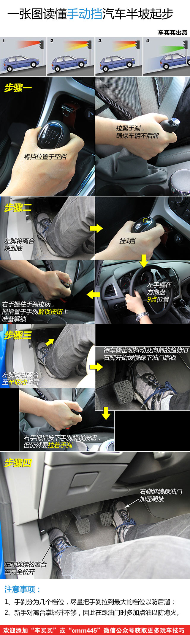 半数以上低速车祸都是发生在汽车起步阶段。而随着中国汽车占有率提高,在进出车库时引起的因半坡起步不顺导致的事故更是时有发生。如果你是新手,如果你身边也有新手,那么下面这张半坡起步图解就要赶紧收藏起来了: