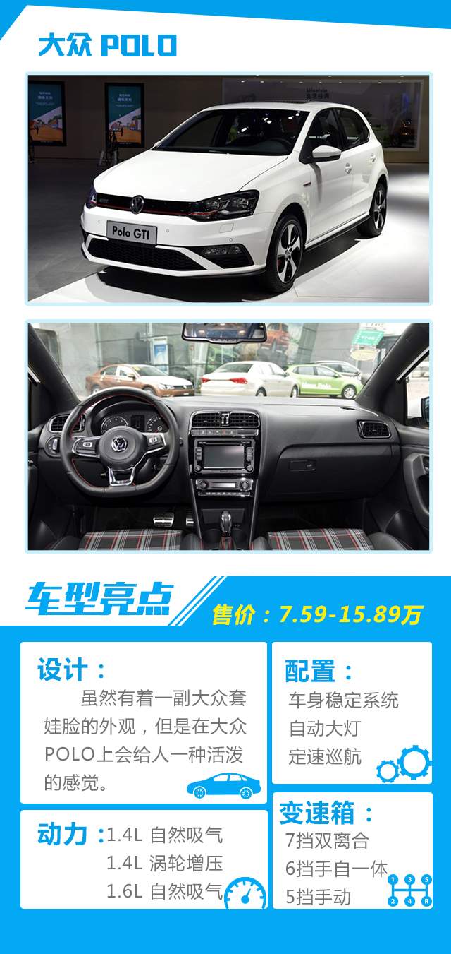 点评:POLO的外观时尚大气受到了车主们的一致好评,内饰虽然也是大众一贯的设计风格,没有什么亮点,但也没有什么不足;动力方面也有很多组合可以供消费者选择;大众品牌在中国的影响力也无需置疑。但是关于减配这件事情,小编真的要给一个差评!